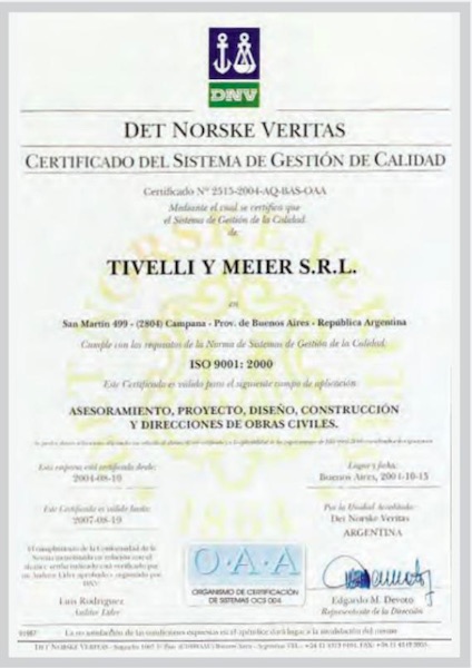 En el marco del plan alentar, la empresa Tivelli & meier logró su certificación en gestión de calidad iso 9000 luego de recibir un entrenamiento de casi un año. La capacitación fue patrocinada por Tenaris siderca y les permite a las empresas desarrollar sus actividades bajo patrones internacionales.